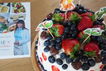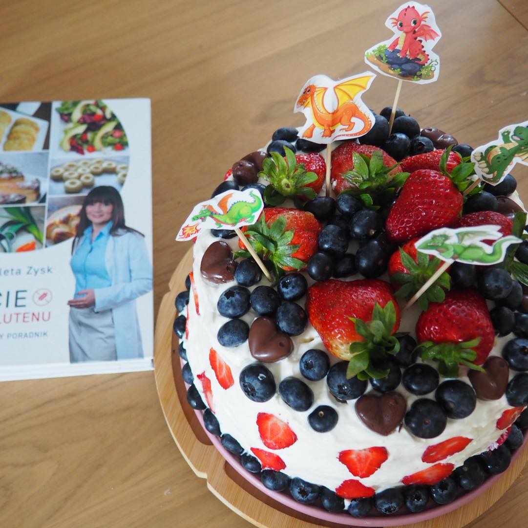 Przepis pochodzi z mojej książki „Życie bez glutenu”. W naszej rodzinie zdarzało się wcześniej zamawiać gotowe torty na urodziny wyglądały pięknie, ale często było w nich bardzo dużo masy cukrowej i niestety mało kto miał ochotę je jeść.